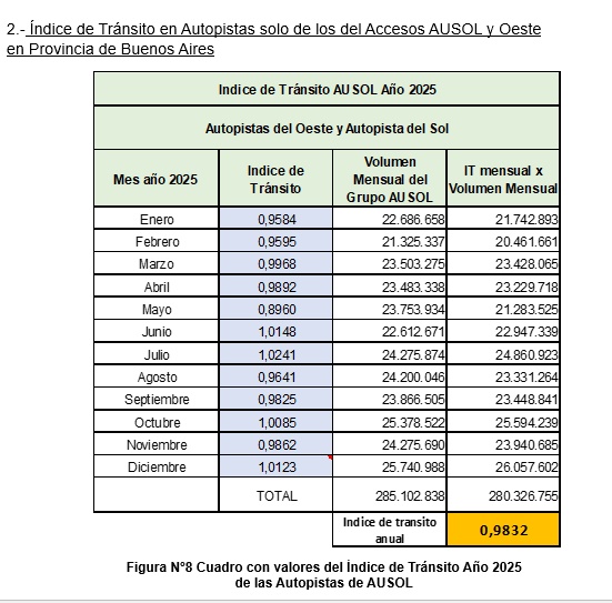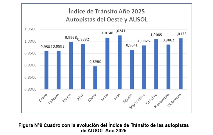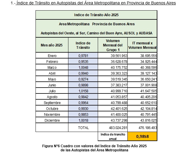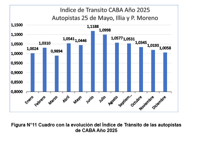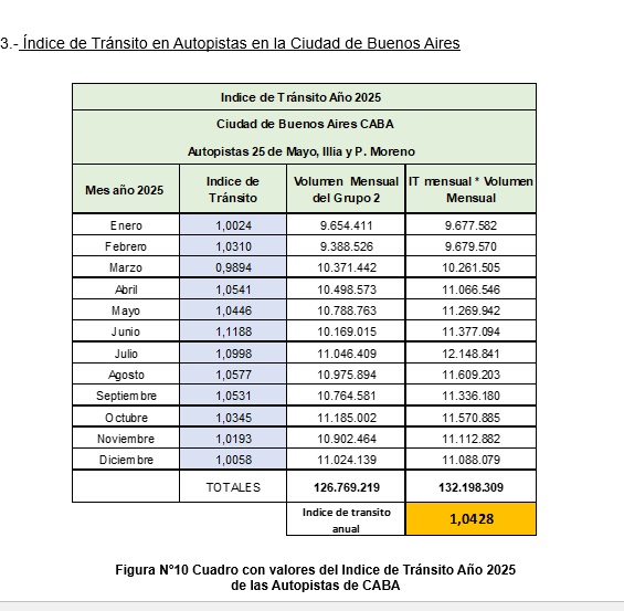 Resultados del cálculo del índice de Tránsito en Autopistas para el año 2025